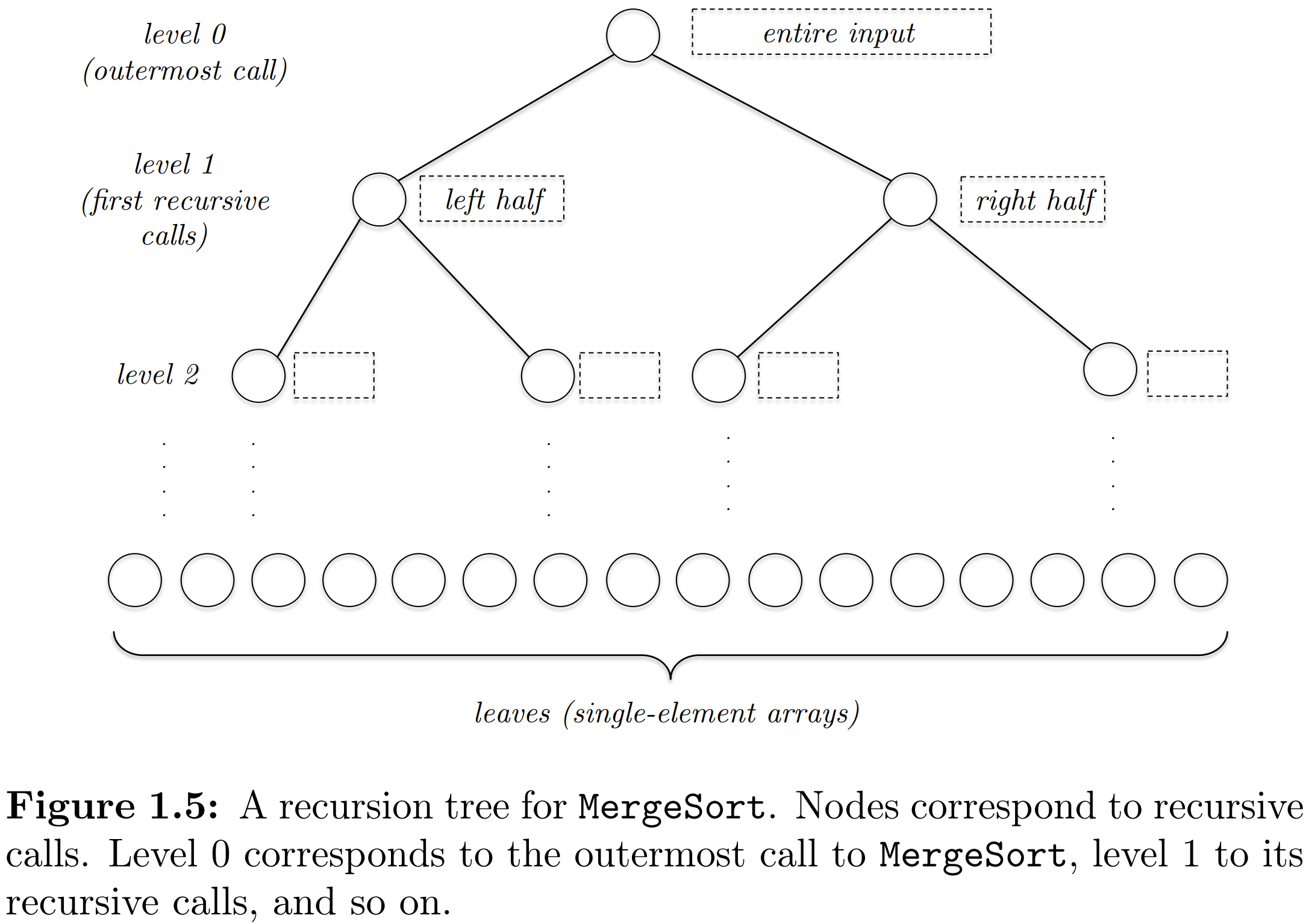 Theorem 1.2 For every input array of length $n \geq 1$, the $\mathtt{MergeSort}$ algorithm performs at most